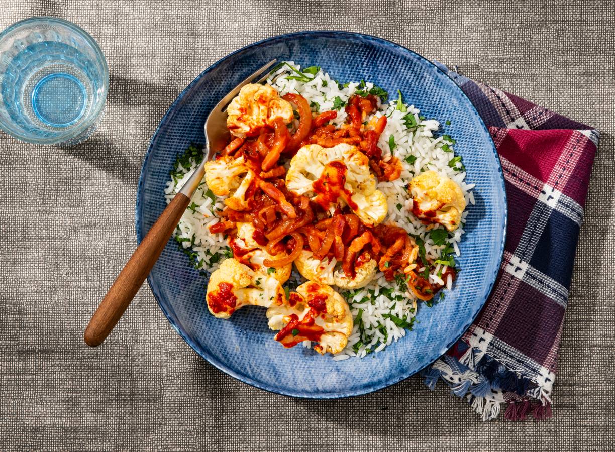 Geroosterde bloemkool krijgt een verrassende upgrade met spek-gochujangsaus: hartig, licht pittig en een beetje sticky. Geserveerd met rijst en peterselie wordt het een smaakvol hoofdgerecht met een lekkere kick.