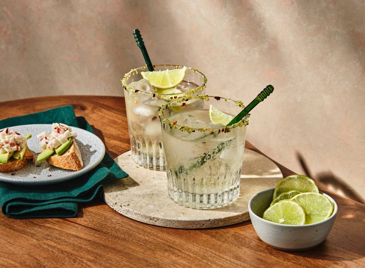 Powerkoppel: deze lichtpittige gingermule mocktails en de crostini met romige surimisalade zijn een perfecte match. Kom maar door met die borrel.