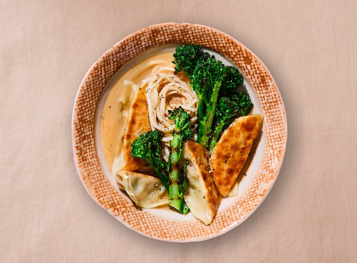 Op zoek naar een verwarmende maaltijd? Deze gyoza-soep met verse ramen, gegrilde bimi en malse kipgyoza brengt Aziatische smaken naar je eigen keuken. Een smaakvol en voedzaam hoofdgerecht dat binnen 30 minuten op tafel staat.
