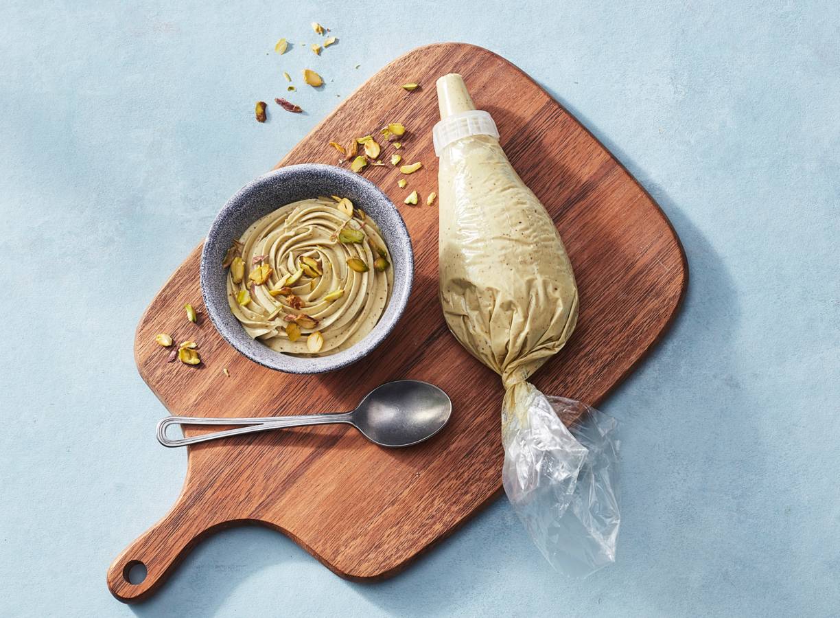 In al 5 minuten maak je deze mousse met pistache klaar. Je gebruikt 'm vervolgens als topping of vulling voor je favoriete desserts.