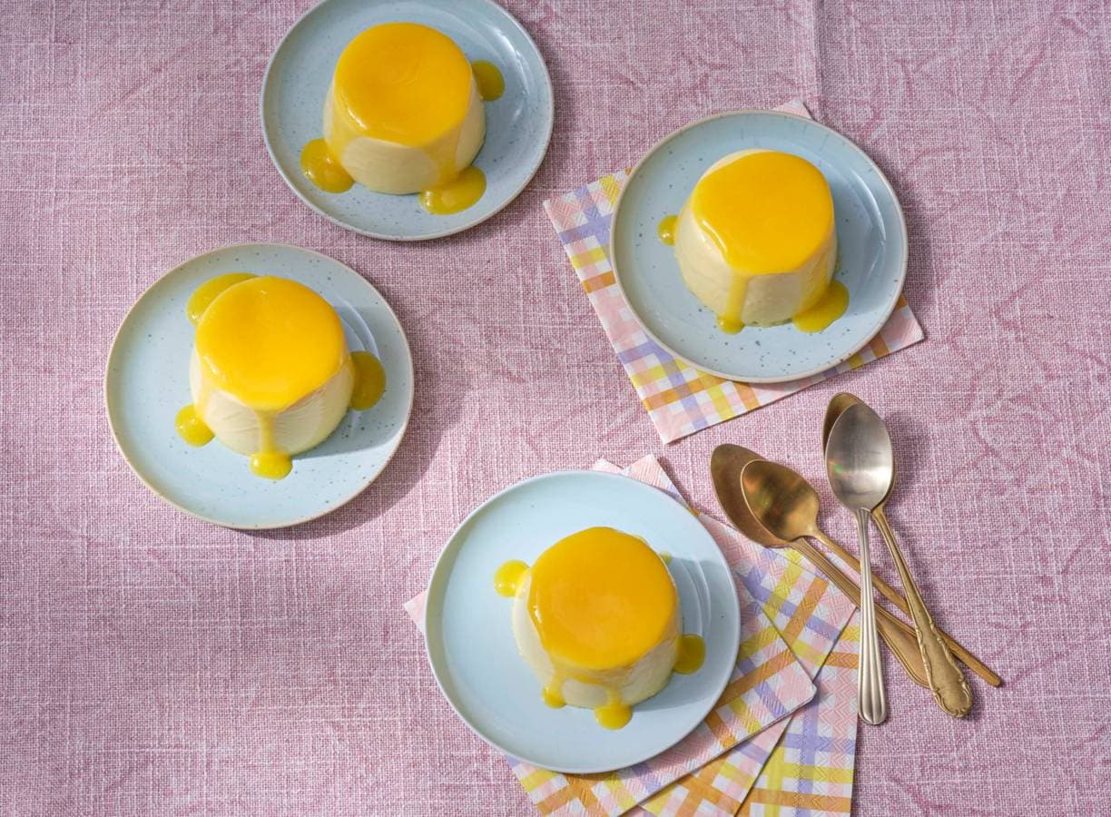 Neem een romige panna cotta met vanille en overgiet 'm met een zoete mangosaus met een vleugje limoen, en ta-da: het perfecte toetje!