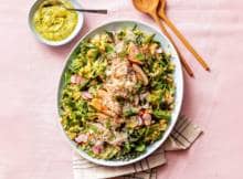 Deze frisse orzosalade met kip, snijbonen, spinazie en verse kruiden staat in 30 min. op tafel!