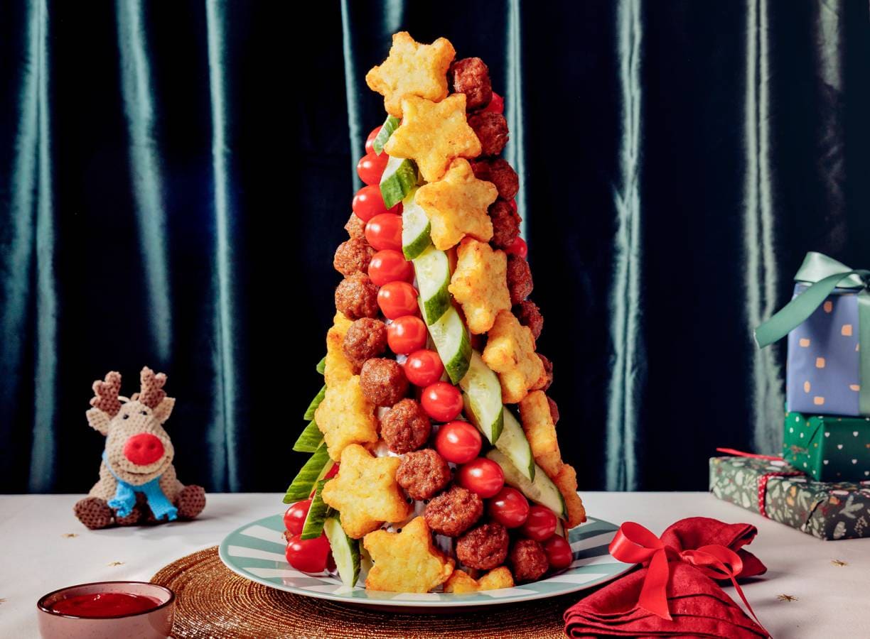Showpiece op elke kersttafel, makkelijk voor te bereiden en mee te nemen. Hangt boordevol lekkers zoals aardappelsterren, gehaktballetjes en snoepgroenten.