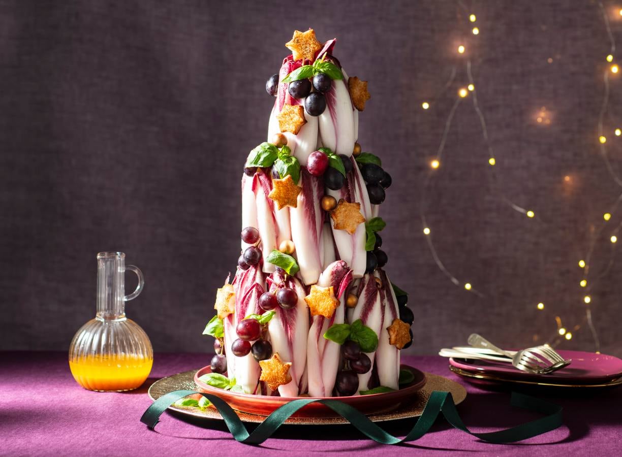 Laat roodlof schitteren deze kerst en maak er een kerstboom van! Als pronkstuk op tafel met broodsterretjes, frisse druiven en een zachte dressing is dit een indrukwekkend bijgerecht.