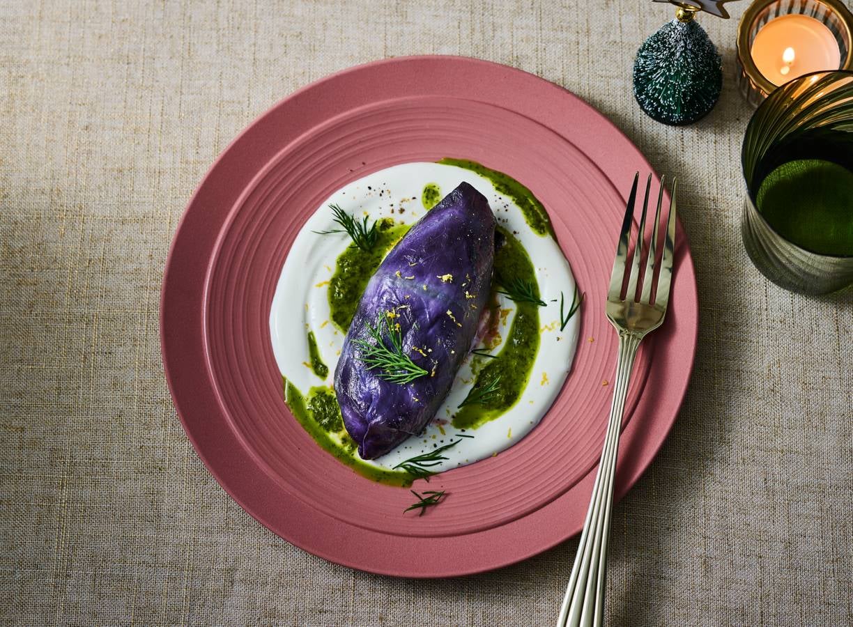 Een vegetarisch hoofdgerecht serveren met kerst? Waarom niet! Deze rodekoolbladeren gevuld met smaken van het seizoen als noten en kastanjechampignons zijn lekker licht én staan mooi op de kersttafel.