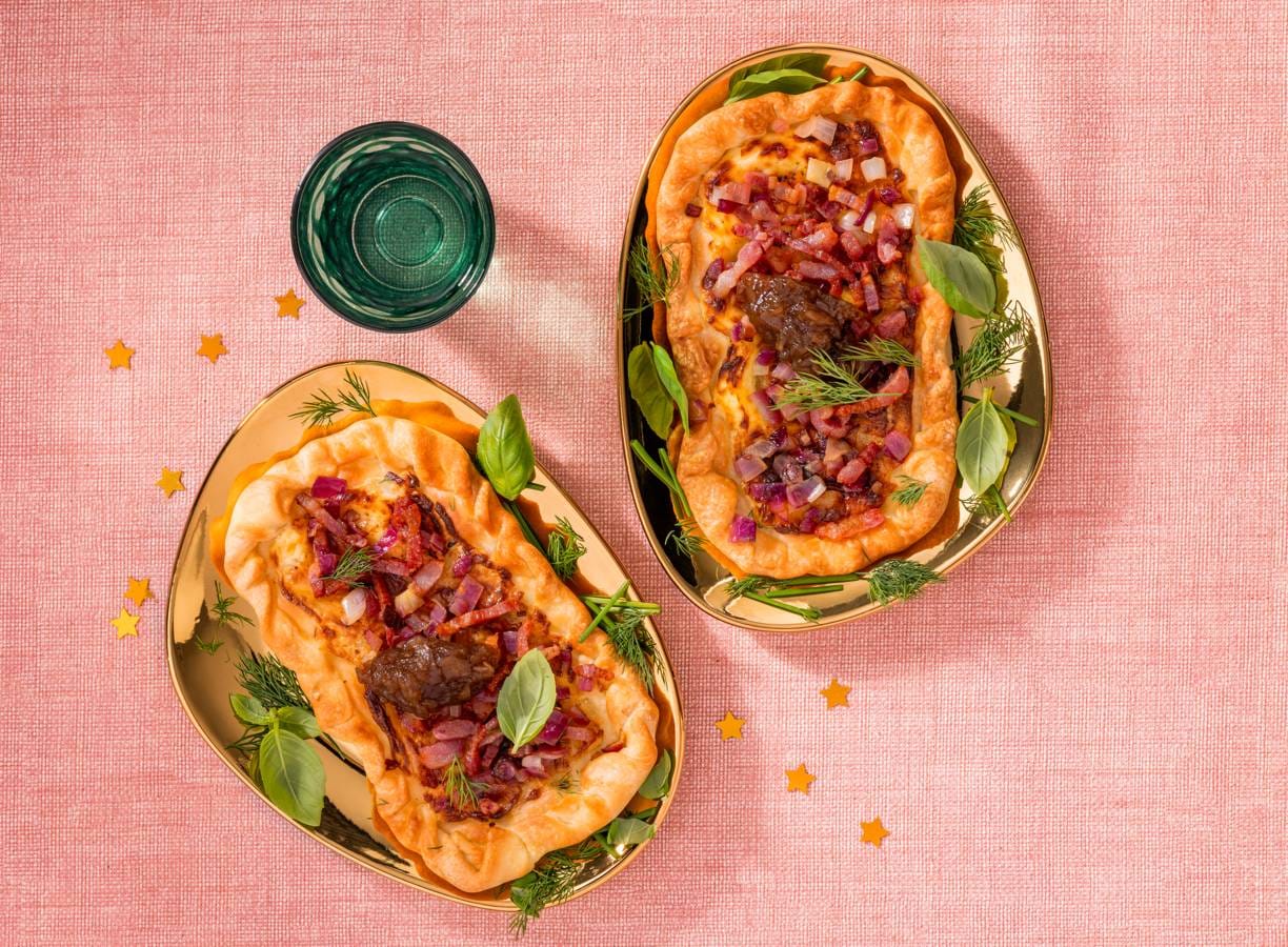 Supersnelle mini-flammkuchen uit de airfryer met romige crème fraîche, gerookte spekjes, ui en verse kruiden. Lekker met een frisse kruidensalade en balsamicochutney. Echt een feestelijk voorgerecht dat je binnen no-time serveert.