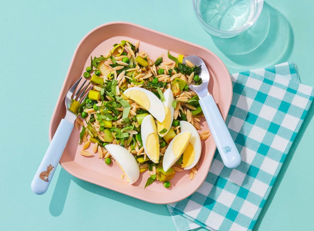 Lente-orzo met tuinerwten, prei en spinazie van Kindergarden