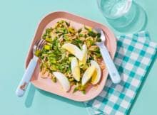 Koken met Kindergarden: Een zachte lente risotto met frisse tuinerwten, prei en spinazie. Een licht, groen en voedzaam gerecht dat kinderen én volwassenen laat genieten van de smaken van het nieuwe seizoen!