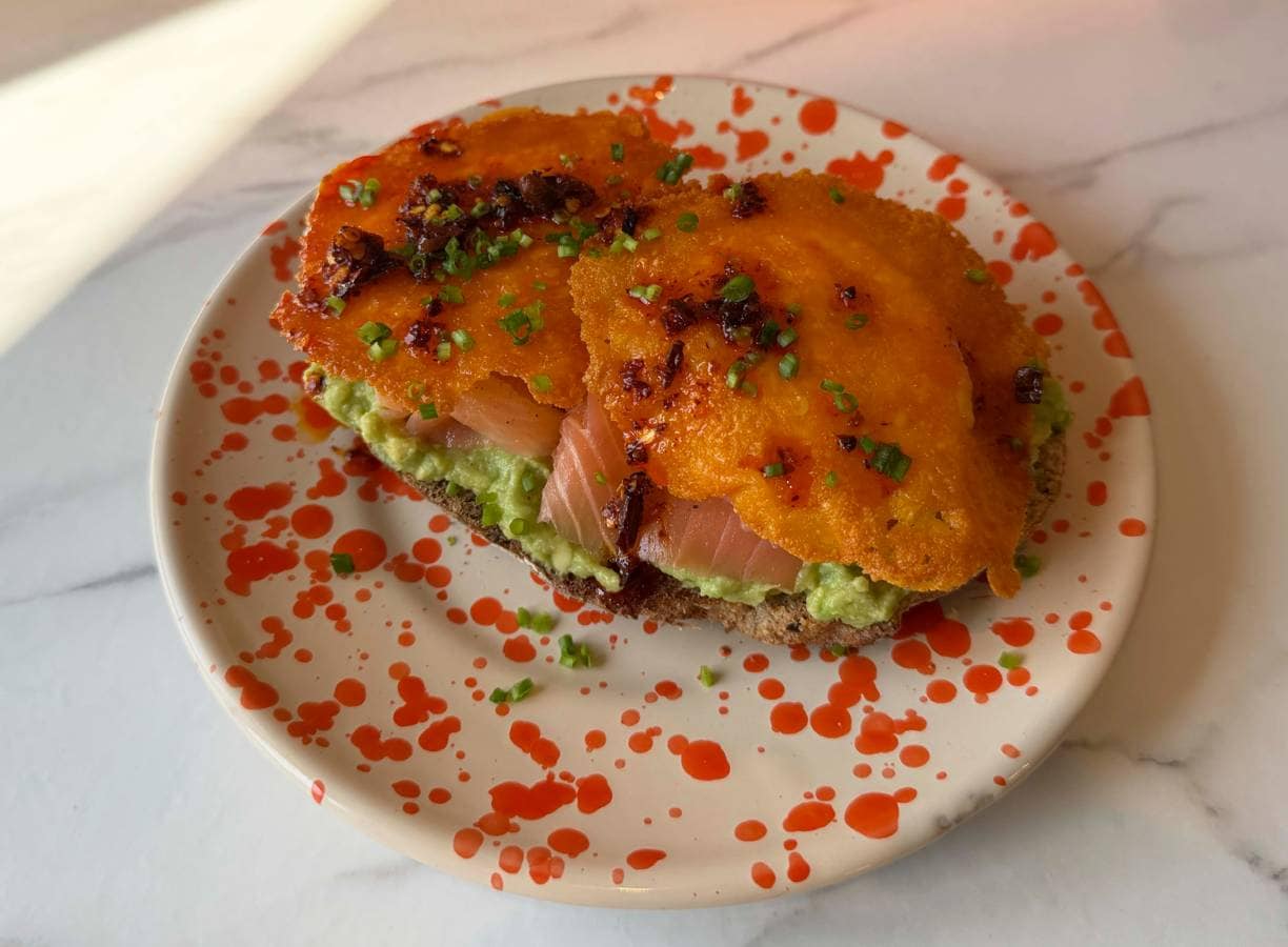 Kaas + ei = de beste combo. Dit gekookte eitje bak je krokant in geraspte cheddar. Heerlijk op avocadotoast met zalm.
