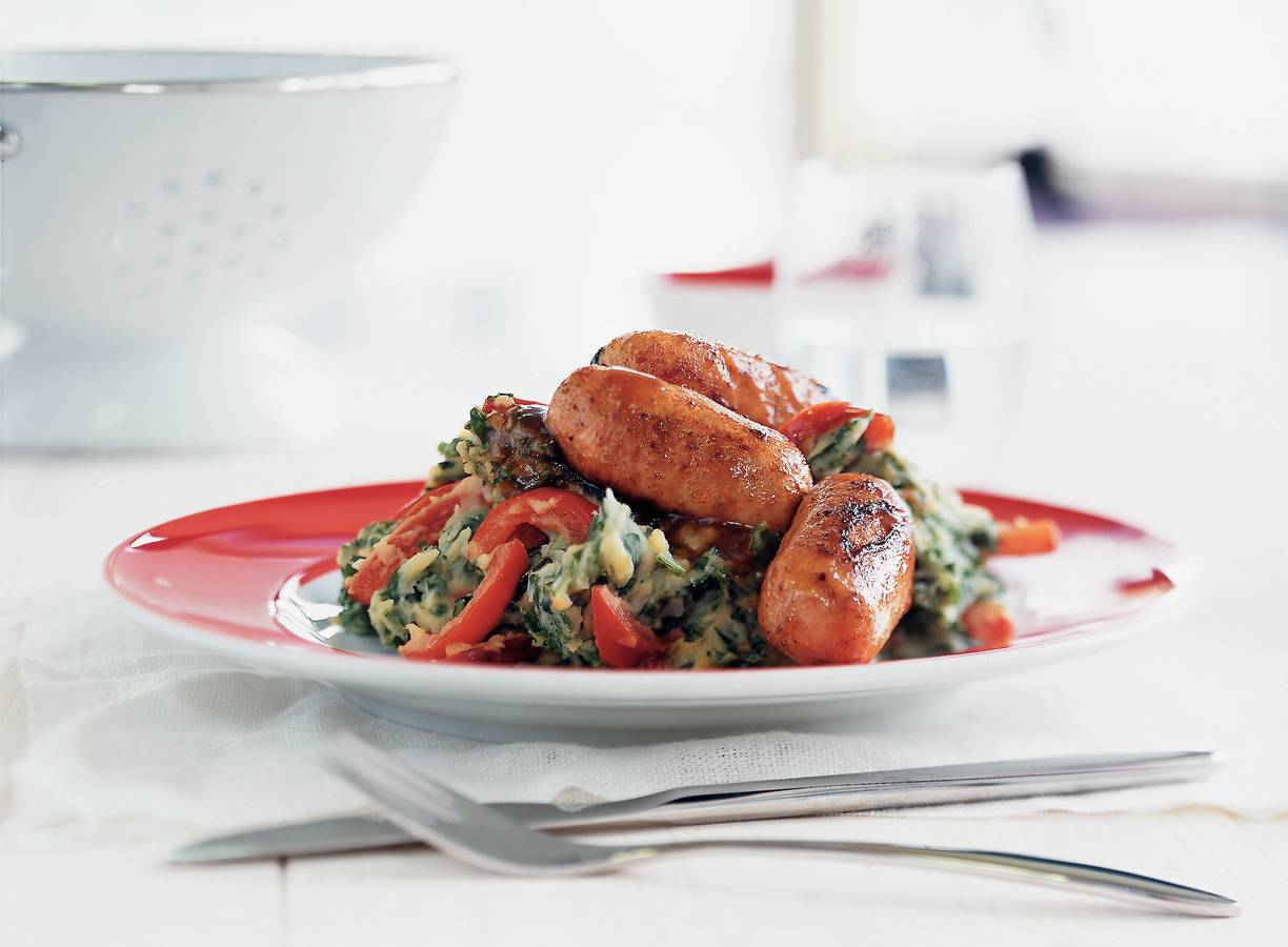 In grote pan ruim water met zout aan de kook brengen. Ansjovis afgieten (olie opvangen) en in stukjes snijden. Penne in 10-12 minuten beetgaar koken. In wok of hapjespan 1 eetlepel Ansjovisolie verhitten. Ansjovis en bevroren groentemix toevoegen en geheel ca. 8 minuten op hoog vuur roerbakken. Grove steeltjes van spinazie plukken. Halverwege baktijd spinazie toevoegen en meebakken tot spinazie geslonken is. Pasta afgieten en door groentemix scheppen. Pasta over vier diepe borden verdelen en bestrooien met geraspte kaas.