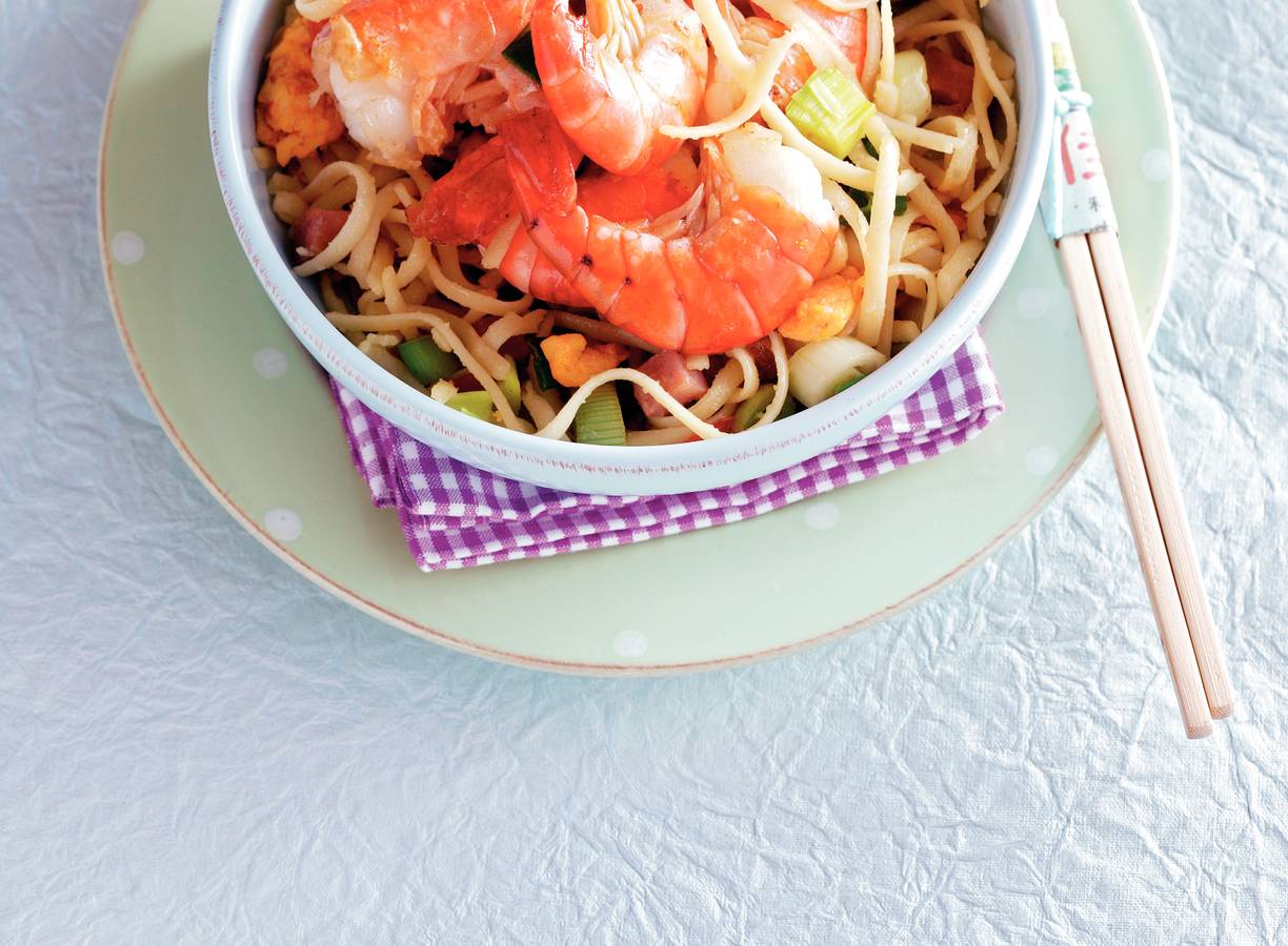 Bami (kant en klaar) met bosui en reuzengarnalen