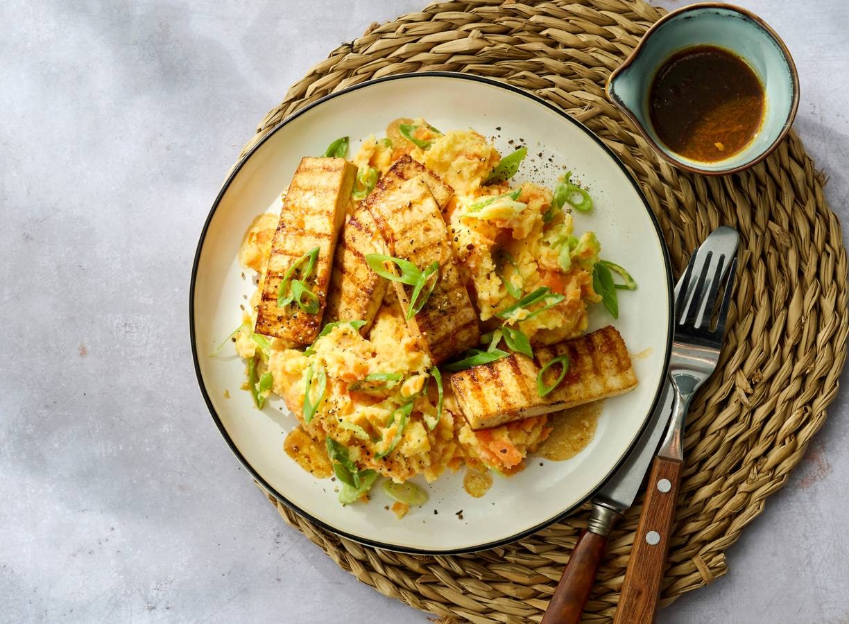 De vegetarische variant van de Hollandse hutspot. Zonder worst, mét tofu.
