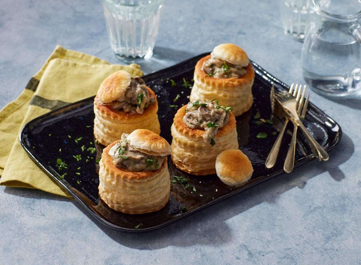 Heerlijk zelfgemaakte ragout van paddenstoelen. Verrassend met een ‘drupje’ witte port. Natuurlijk het allerlekkerst in een bladerdeegpasteitje.