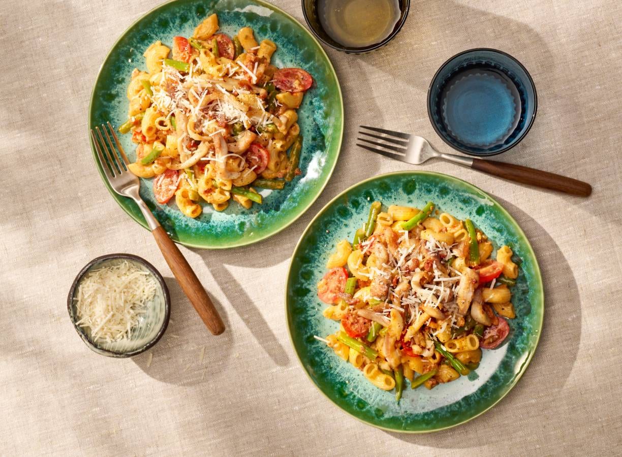 Macaroni met kip, een handig maaltje voor doordeweeks. Al in een halfuurtje op tafel en aangevuld met lekker veel groente.