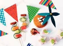 Steek met een koekjessteker 30 harten of sterren uit 15 plakjes kokosbrood. Steek 20 harten of sterren uit de sneetjes witbrood. Stapel ze om en om op elkaar en eindig met een kokoshart of -ster. Steek 10 witte druiven aan vlaggetjes en prik ze in de kokosharten.