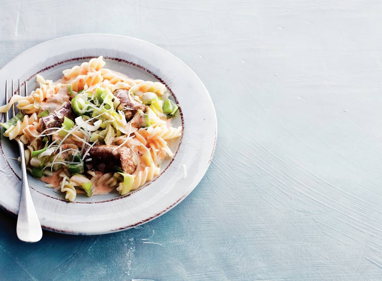 Romige preipasta met rundersaucijs