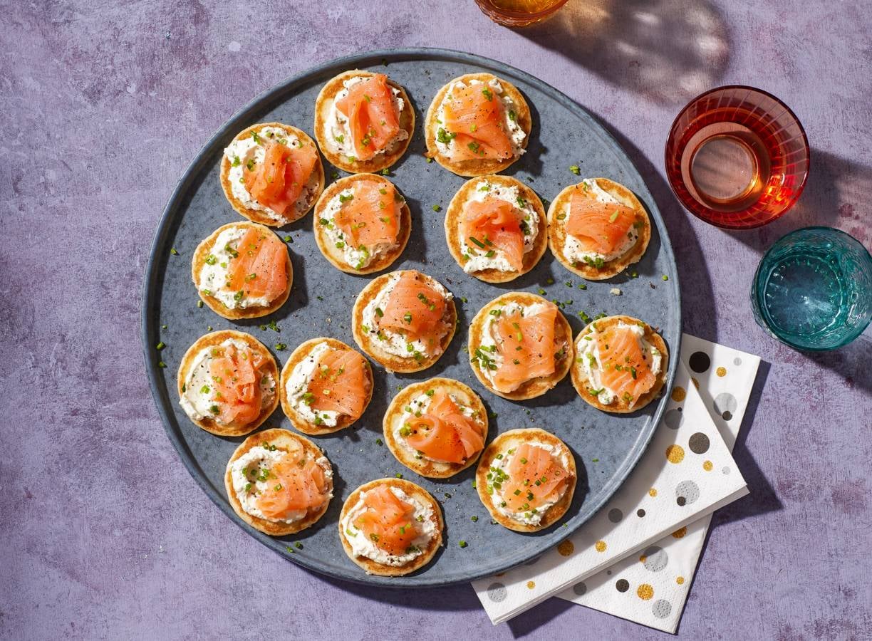 Een kruising tussen een pannenkoek, poffertje en eierkoek: blini's. Ze komen uit Rusland en je eet ze met verschillende toppings. Deze keer met zalm en crème fraîche. Smullen!