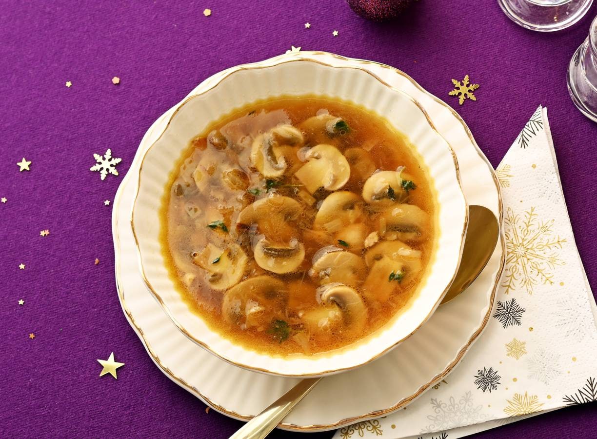 Heldere champignonsoep