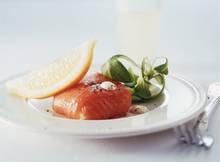 Zalmhapje met vulling in pastisdressing