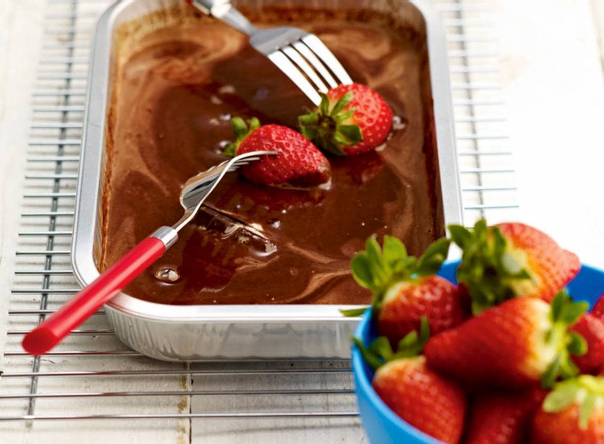 Aardbeien met chocoladesaus