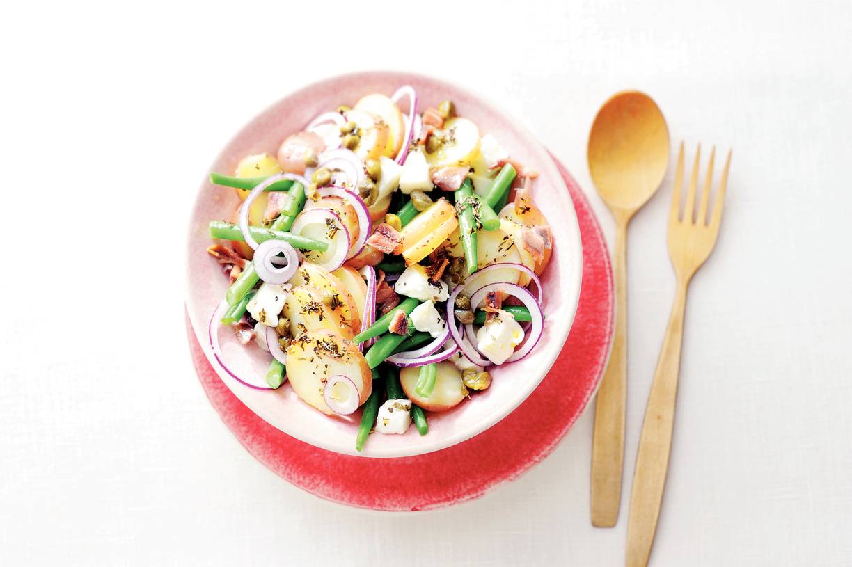Aardappelsalade met een twist: heerlijke groente en vette vis.