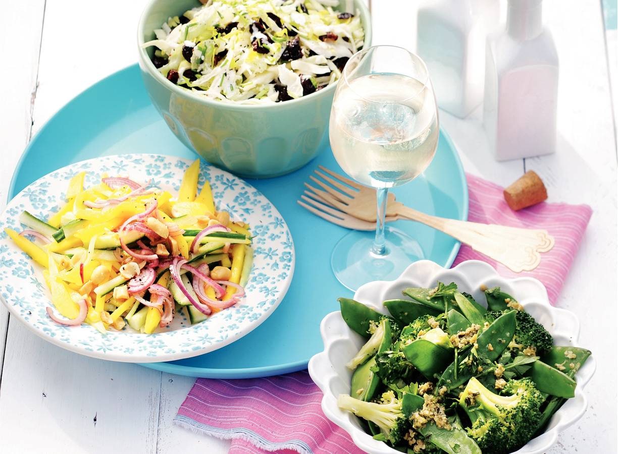 Meng de kool met de bleekselderij, cranberry's, bieslook en peper en zout. Coleslaw is dé klassieke salade voor bij hamburgers, maar smaakt ook lekker bij kip van de barbecue en gepofte aardappelen.