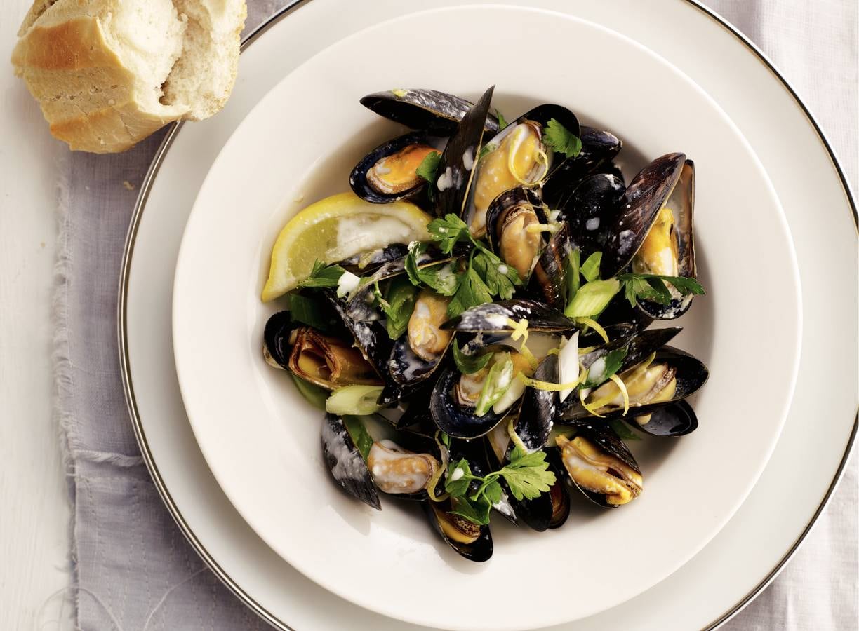 Mosselen met citroenroom en peterselie