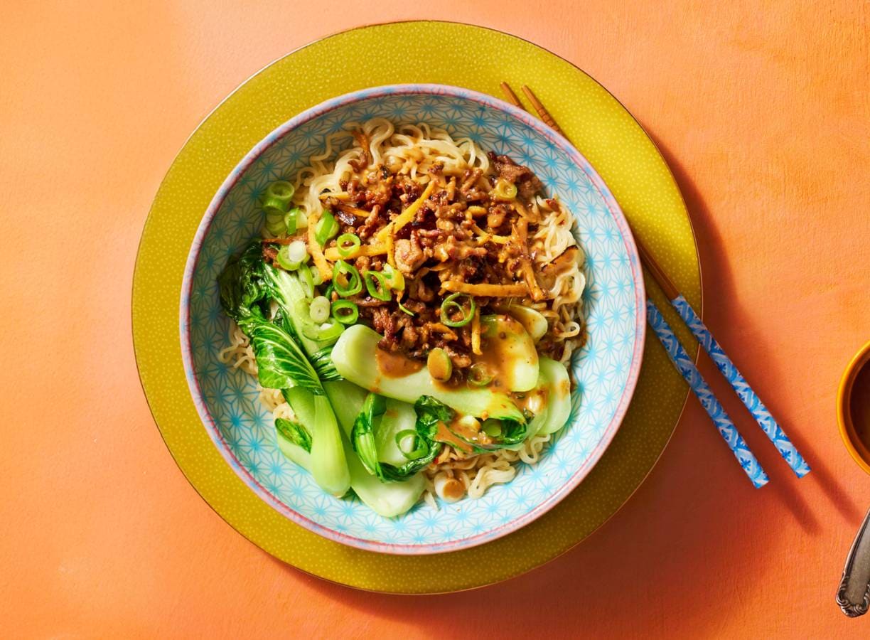 De van oorsprong uit Sichuan afkomstige dàndàn-noedels (dandanmian) maak je met gehakt, sesam en chili olie.