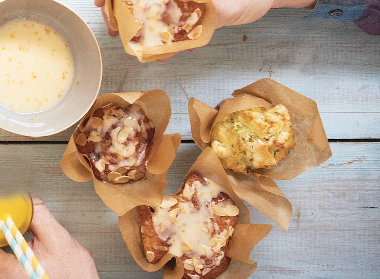 Bestrooi met de geschaafde amandelen en zet de muffins 20-25 min. in de oven, of tot ze goed gerezen, goudbruin en gaar zijn. Om te controleren of ze gaar zijn, prikt u erin met de satéprikker. Komt de prikker er schoon uit, dan zijn de muffins gaar. Zet ze anders nog een paar min. in de oven.