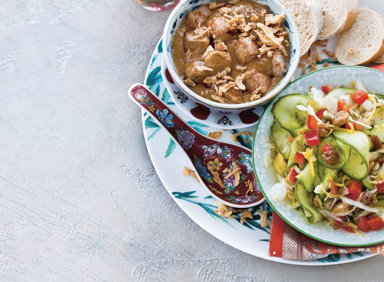 Schep de saté en atjar op 4 borden. Serveer met het stokbrood. Lekker met gebakken uitjes (bakje 100 g).