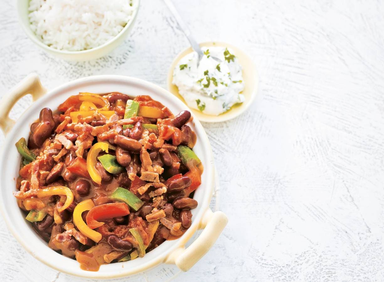 Chili met vegaspekjes