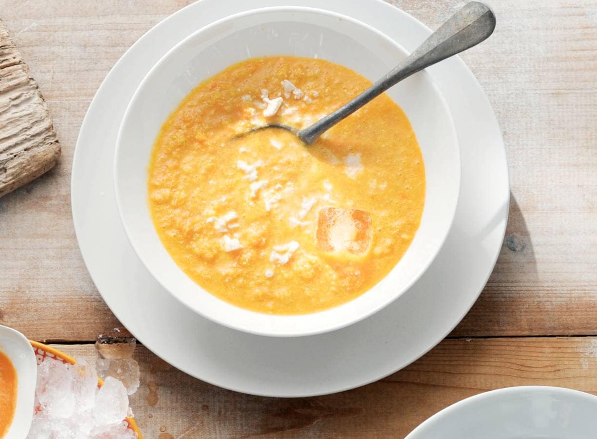 algemeen:Wilt u de soep direct serveren? Doe er dan een paar ijsblokjes in.