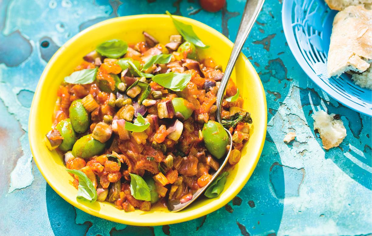 Caponata met groene olijven