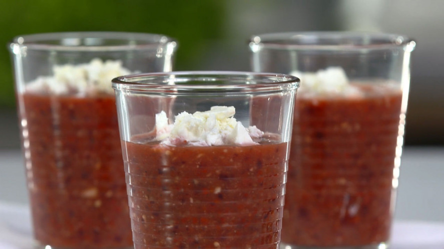 Ben je op zoek naar een spectaculair en feestelijk voorgerecht deze kerst? Ga dan aan de slag met het recept voor gazpacho van kersen. In de handige receptvideo zie je hoe je dit recept zo op tafel zet.