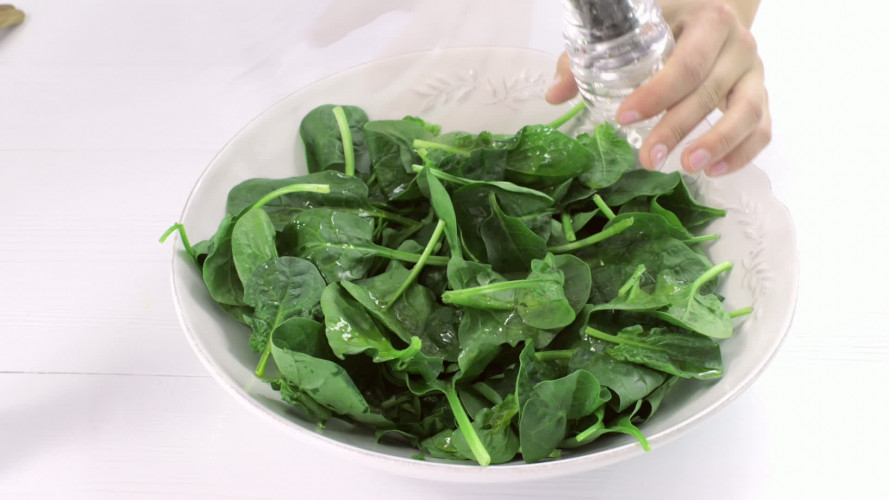 Spinaziesalade met gegrilde kip aardbeien en witte kaas ZONDER.mov
