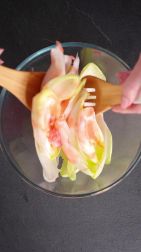 Witlofsalade met geitenkaas, aardbeien en aardbeiendressing