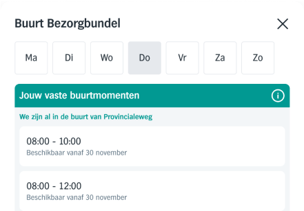 De ruimte van vaste bezorgmomenten ten opzichte van alle momenten op een dag is beperkt. Uiteraard kan je kan je naast je vaste moment ook wekelijks een (extra) moment kiezen. Valt dit moment binnen je bundel, dan betaal je ook voor dat moment geen bezorgkosten!