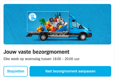Laat je boodschappen elke week op hetzelfde moment bezorgen. Heb je iets extra's nodig? Bestel gerust op andere momenten zonder bezorgkosten.