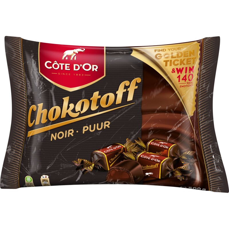 De chokotoff is een toffee omhuld met heerlijke cote d¿or chocolade, speciaal ontworpen voor lekkerbekken die heeeel lang van de chocolade van cote d¿or willen genieten.
