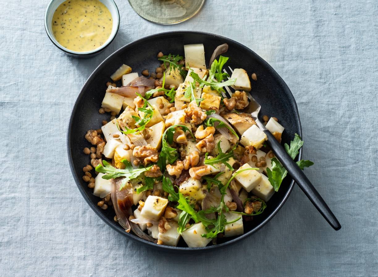 Geroosterde knolselderijsalade & mosterd-saliedressing