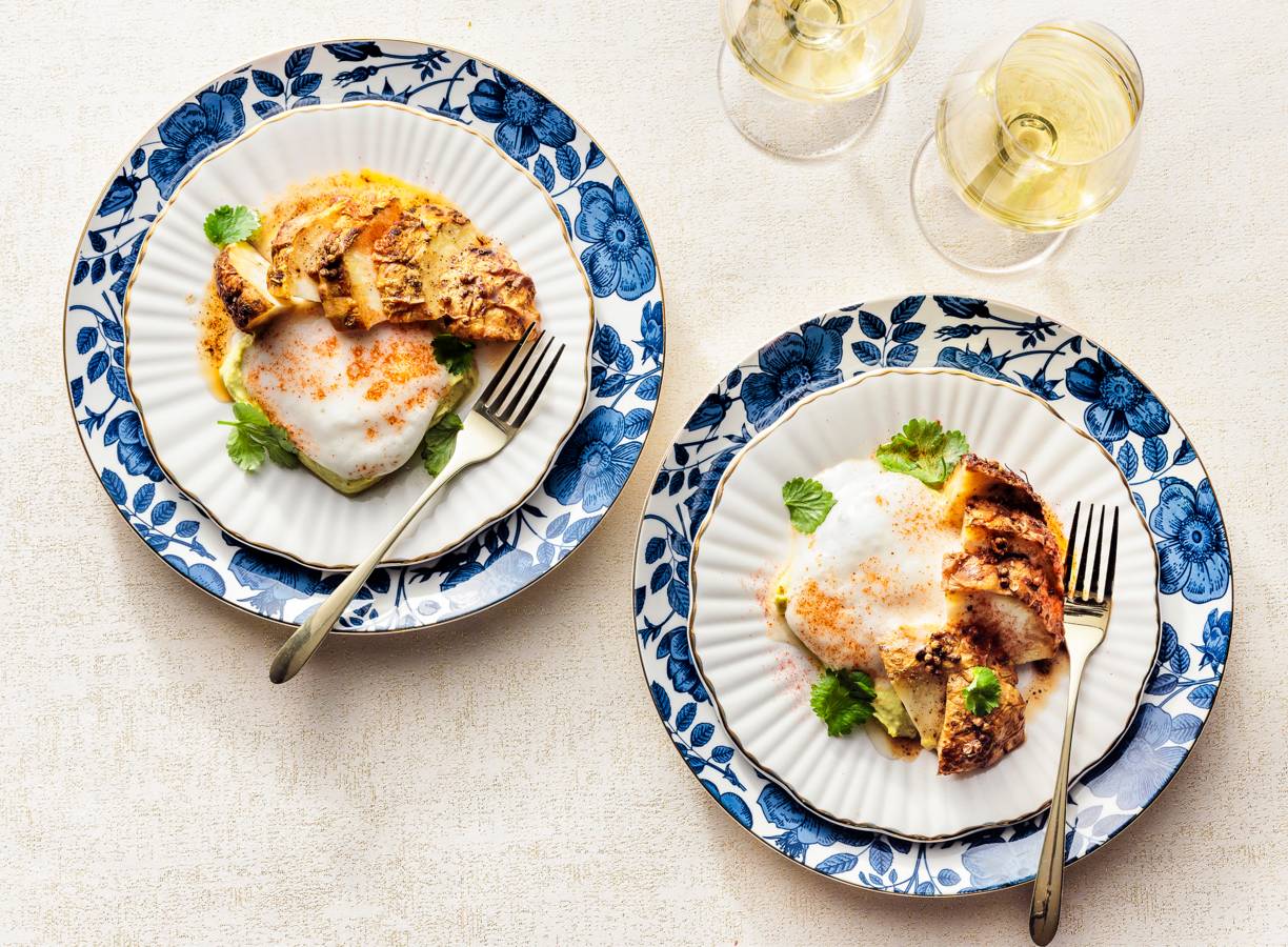 Dit vegan hoofdgerecht is een pareltje. Want gebraden knolselderij met kikkererwtenschuim klinkt niet alleen goed, zo smaakt het ook.