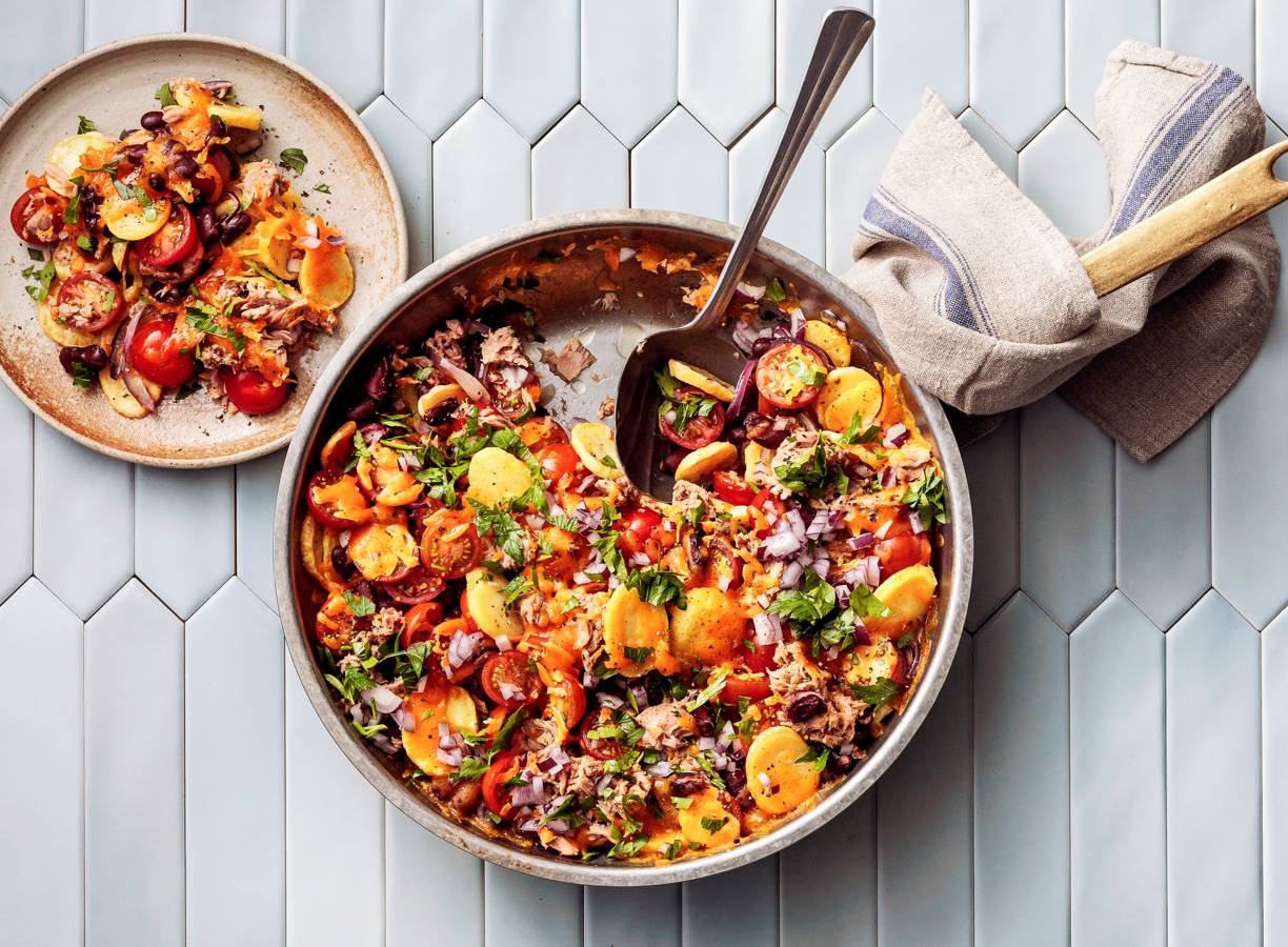 Blikje tonijn in de voorraadkast? Maak dan eens deze snelle tunamelt met gebakken aardappeltjes naar recept van London Loy! Liever vega? Gebruik dan plantaardige tonijn.
