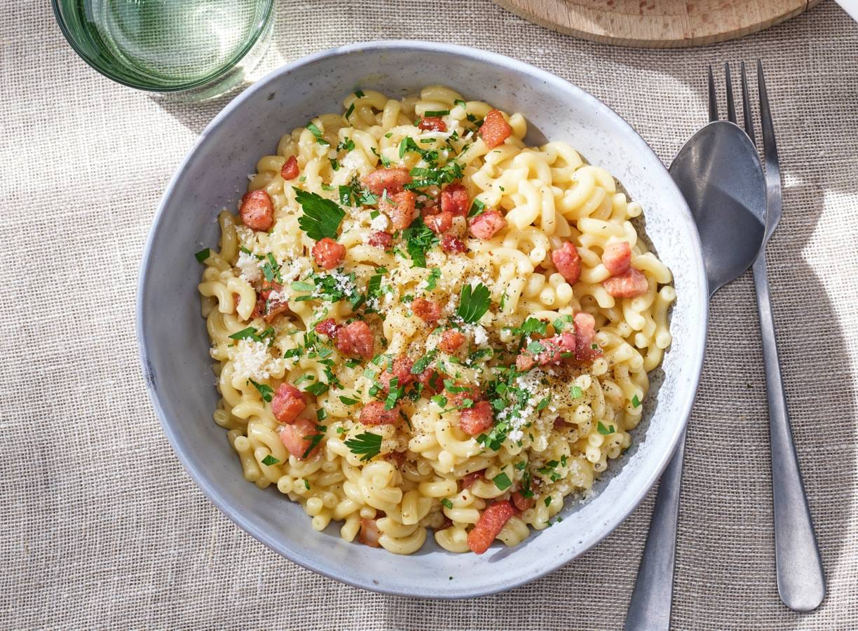 Carbonara is makkelijk, je hebt niet meer nodig dan spek, ei en kaas. In deze versie voegen we ook nog knoflook toe. Dit keer met macaroni in plaats van de traditionele spaghetti. Zo heb jij in 20 minuten je macaroni carbonara op tafel staan.